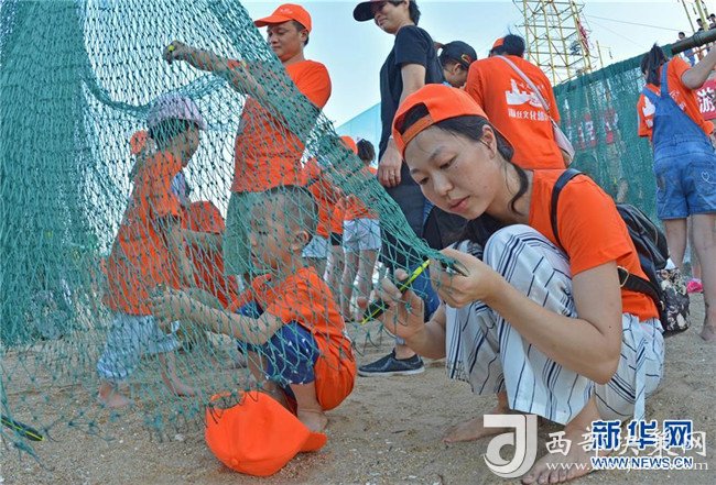 8月8日,“小候鳥”們與家長一起體驗(yàn)漁網(wǎng)制作。