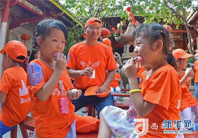 為進(jìn)一步豐富廣大外來務(wù)工人員子女的暑期生活,福建省泉州市泉港區(qū)先后邀請轄區(qū)130多戶外來務(wù)工人員家庭,一起參觀當(dāng)?shù)胤逦补懦?,體驗(yàn)海絲文化。新華社發(fā)(林弘梫 攝)