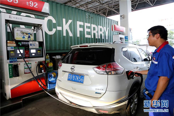 9月3日,江蘇省連云港市一家加油站的工作人員給車輛加油。 當(dāng)日,國家發(fā)展改革委發(fā)布消息,按照現(xiàn)行成品油價(jià)格形成機(jī)制,自2018年9月3日24時(shí)起,國內(nèi)汽油、柴油價(jià)格每噸分別上調(diào)180元和170元。 新華社發(fā)(王春 攝)