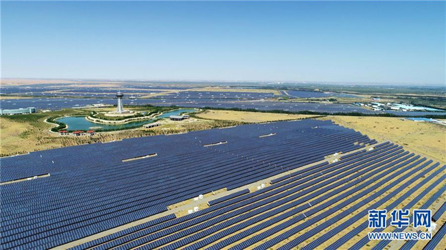 寧夏中衛(wèi)市沙漠光伏產(chǎn)業(yè)園光伏電站(9月7日無人機(jī)拍攝)。新華社記者王鵬攝