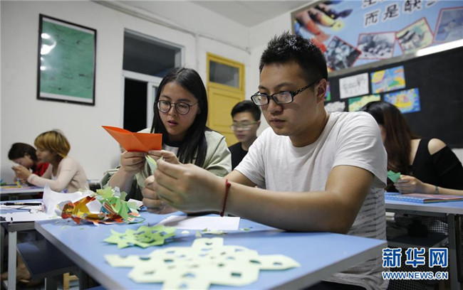 近年來,越來越多的“80后”“90后”教師加入教學隊伍。2017年,在幾名青年教師的倡議下,學校開設了“教師夜校”,教師們在教學工作之余,每周一至周四的晚上七點半至九點可以參加閱讀、書法、舞蹈等活動,豐富業(yè)余生活的同時,也提升了教師的綜合素質(zhì)。新華社發(fā)(游青 攝)