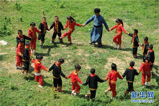 9月5日,貴州畢節(jié)市黔西縣花溪彝族苗族鄉(xiāng)豐坪小學教師楊朝俊和學生一起跳民族舞蹈。時至今日,楊朝俊在當?shù)亟虝延?4個年頭,曾孤身一人守著豐坪小學兩個年級的30余名學生,照顧他們的學習和生活。楊朝俊默默堅守的事跡,吸引了一名支教老師前來“搭班”。今年新學期開學時,當?shù)亟逃块T又選派了一名年輕的特崗教師來到學校,分擔教學工作。新華社發(fā)(楊文斌攝)