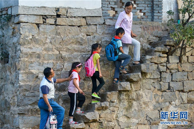 9月7日,在位于太行山東麓的河北省邯鄲市涉縣更樂鎮(zhèn)張家莊村,“80后夫妻”趙文波和秦晶晶一起護送學生回家。趙文波和秦晶晶均為師范學校畢業(yè),先后投身當?shù)剞r(nóng)村教育事業(yè)。2000年兩人相識,共同的教育理想讓他們走到了一起。18年來,兩人相愛相守,扎根山區(qū),在三尺講臺上共同堅守。新華社記者 王曉 攝