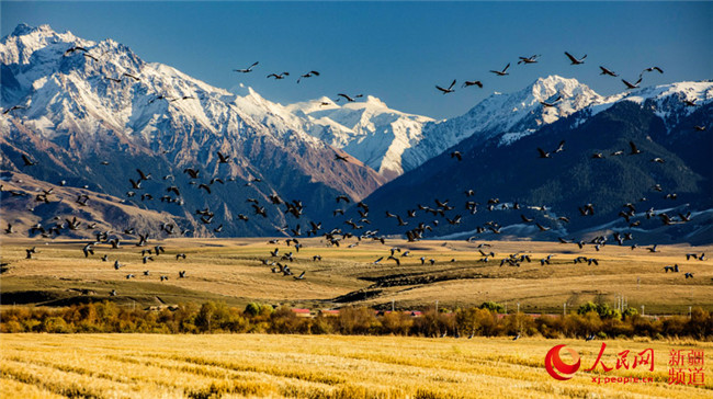 伊犁河谷獨(dú)特的河谷地形和豐富的伊犁河水系,使這里成為一塊豐饒的“濕島”,為各種鳥(niǎo)類提供了豐富的食物。而昭蘇縣作為鳥(niǎo)類遷徙的重要通道之一,每年秋天有近50萬(wàn)只候鳥(niǎo)通過(guò)這里遷徙。(李文武 李忠銘)