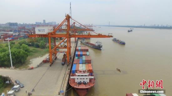 陽(yáng)邏武漢新港位于武漢天興洲以東70公里的長(zhǎng)江岸線上,是中國(guó)最大內(nèi)河航運(yùn)港口。中新社記者 鄭子顏 攝