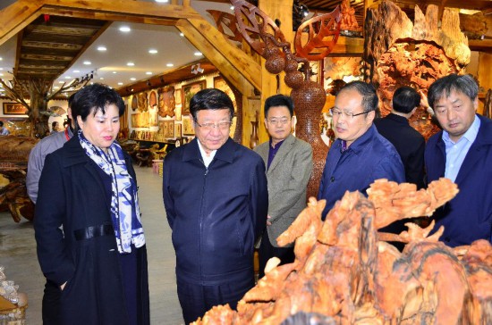 張建龍首先來到烏馬河木藝文化小鎮(zhèn),詳細了解小鎮(zhèn)規(guī)劃布局和建設(shè)發(fā)展情況,通過觀看小鎮(zhèn)宣傳片,現(xiàn)場參觀小鎮(zhèn)服務(wù)中心、木藝產(chǎn)品店,對伊春市木藝文化產(chǎn)業(yè)發(fā)展表示高度肯定。他指出要繼續(xù)突出原生態(tài)特色,加強創(chuàng)新創(chuàng)意設(shè)計,滿足人民群眾對林業(yè)產(chǎn)品多樣化的需求。走進美江木藝公司,就如同走進了藝術(shù)的殿堂,制作精良的木拼畫、惟妙惟肖的根雕、造型別致的樹榴工藝產(chǎn)品,一件件精美的木制工藝品,令人目不暇接。張建龍仔細觀賞這些木制產(chǎn)品,向企業(yè)負責(zé)同志詳細了解產(chǎn)品創(chuàng)意設(shè)計和市場銷售等情況。勉勵企業(yè)要再接再厲,繼續(xù)做好產(chǎn)品研發(fā),全面提升工藝水平,創(chuàng)造出更多更好的生態(tài)特色產(chǎn)品,進一步增強林業(yè)發(fā)展的活力與動力。