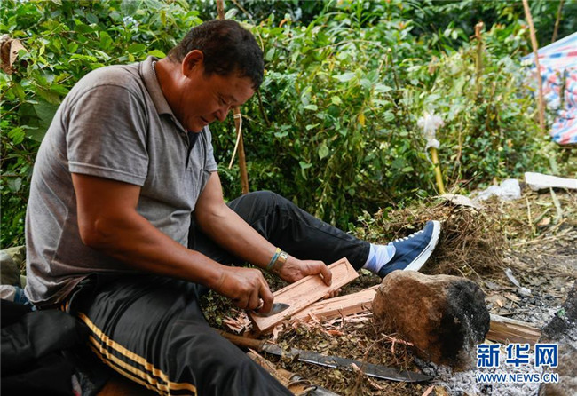 10月22日,在西藏林芝市墨脫縣墨脫鎮(zhèn)米日村臨時(shí)救災(zāi)安置點(diǎn),一名男子在制作刀鞘。 受雅魯藏布江堰塞湖影響的群眾被轉(zhuǎn)移到臨時(shí)救災(zāi)安置點(diǎn),這里秩序井然,群眾基本生活得到保障。10月17日,雅魯藏布江米林縣加拉村附近發(fā)生山體滑坡,堵塞河道,形成堰塞湖。 新華社記者 劉東君 攝