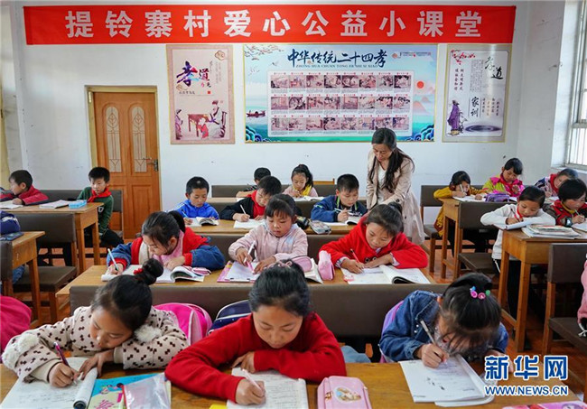 近日,河北省遷安市閆家店鄉(xiāng)提鈴寨村黨支部副書記李飛燕針對該村留守兒童放學(xué)后無人看護(hù)或者沒有人輔導(dǎo)作業(yè)的情況,在村委會辦起了一個“愛心公益小課堂”,讓孩子們來這里學(xué)習(xí),解決了外出務(wù)工家長們的后顧之憂。新華社記者 楊世堯 攝
