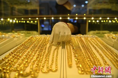 圖為一金店內(nèi)工作人員正在整理黃金飾品。中新社記者 陳超 攝