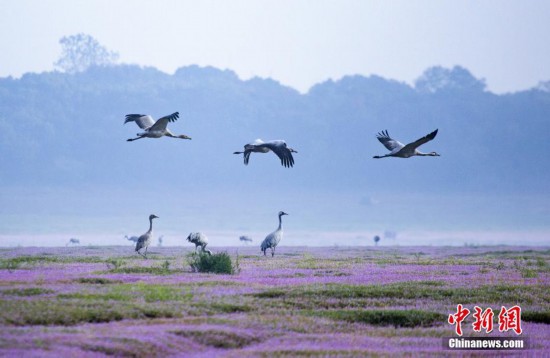 近日,江西鄱陽湖都昌濕地迎來越冬候鳥遷徙高峰。據(jù)江西都昌縣候鳥保護管理局介紹,目前到達(dá)鄱陽湖都昌候鳥自然保護區(qū)的冬候鳥達(dá)十多種,數(shù)量近十萬只。中新社發(fā) 傅建斌 攝