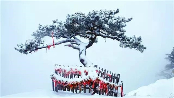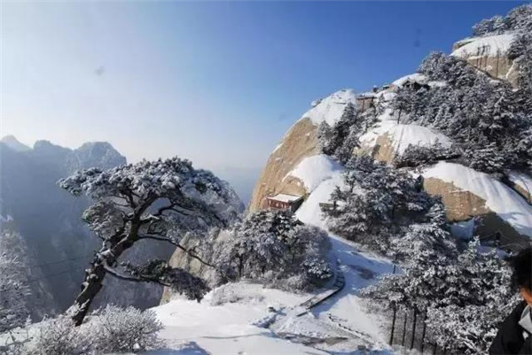 清晨,當(dāng)你推開山莊的窗戶,一定會驚詫眼前的景色。在夜色中掛在松針上的夜露凝固成一串串潔白的冰凌,漫山的松樹像開放著白色的花朵,在晨曦中閃著美麗,這就是華山奇景——雪松。在烏云厚重的日子,山風(fēng)會將云霧吹落在山澗峰嶺,把它變成一層厚厚的雪。站在峰嶺上看華山落雪,那是一片莽莽蒼蒼的銀白世界。雪花在風(fēng)中飄舞著,飄落著,你伸開雙臂雕塑般地佇立在潔白的世界中,“仰面朝天穹,低頭瞰黃渭”。一種豪情心底生,萬般俗念隨風(fēng)去,實(shí)在是一次難得的精神洗禮。——華山文化•冬