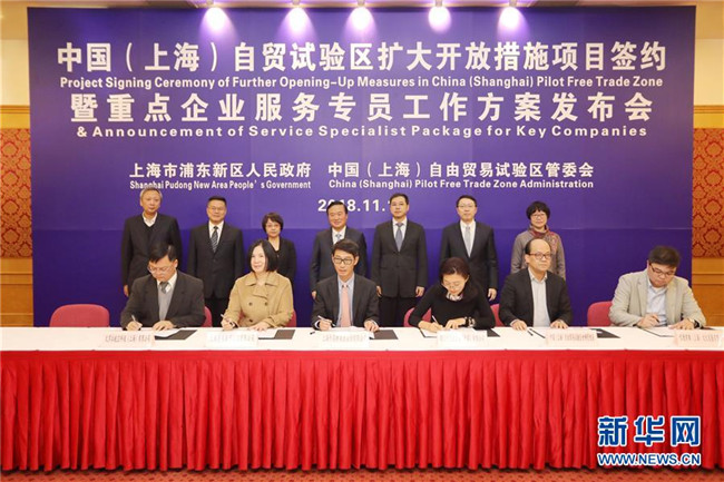 11月19日,上海自貿(mào)區(qū)擴大開放措施項目簽約會舉行。 在商務部和國家發(fā)展改革委的指導下,2013年9月上海自貿(mào)區(qū)發(fā)布中國首份外商投資準入負面清單,其中列明了190條外商投資特別管理措施。2018年,最新版的負面清單管理措施已減少至45條。 上海市商務委副主任申衛(wèi)華說,根據(jù)相關管理辦法,政府對負面清單以外的外商投資企業(yè)和項目實行備案管理,外商投資企業(yè)備案的申報、審核、結果告知全程網(wǎng)上辦理,辦理時間從8個工作日減少到1個工作日。 統(tǒng)計顯示,截至2018年6月,上海自貿(mào)區(qū)掛牌后新設外商投資企業(yè)8696個,吸引合同外資1102.4億美元,實到外資221.33億美元,98%以上是通過備案方式設立。 新華社記者方喆攝