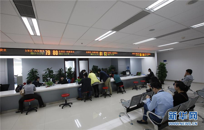 這是設在上海張江高科技園區(qū)管理委員會大樓內(nèi)的中國(上海)自由貿(mào)易試驗區(qū)張江行政服務中心辦事大廳一角(2015年3月31日攝)。新華社記者方喆攝