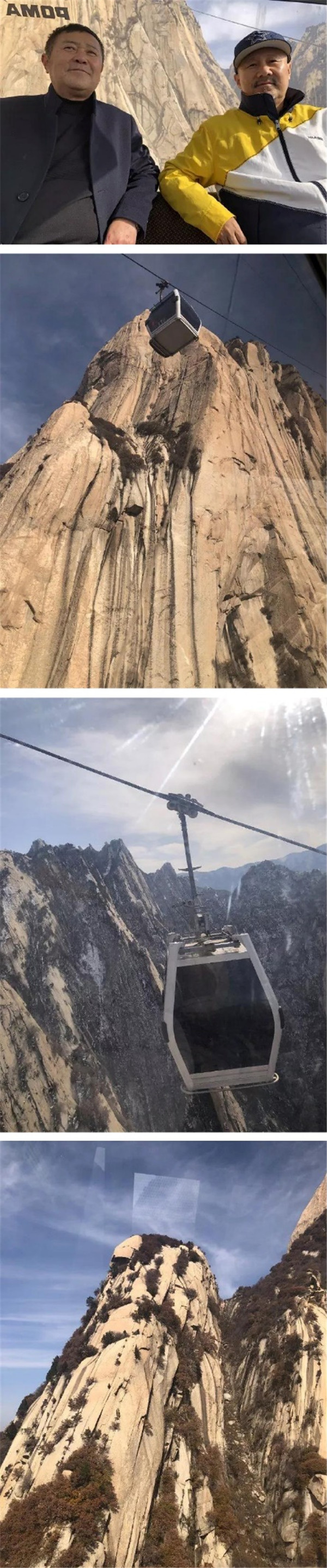 在索道上,騰格爾老師和友人開心的合影,對華山的奇險也是感到驚嘆!