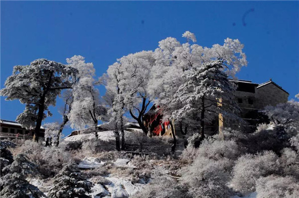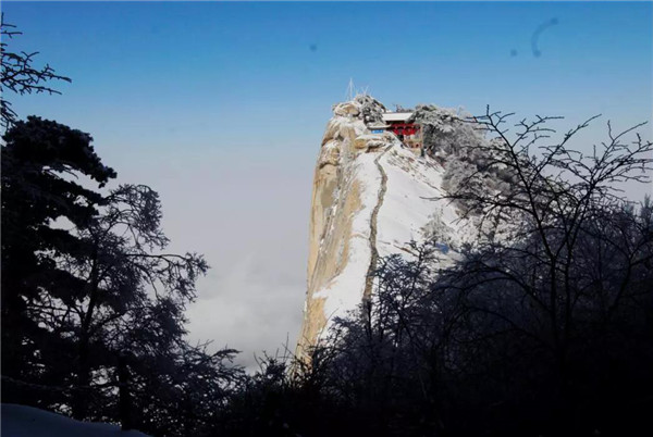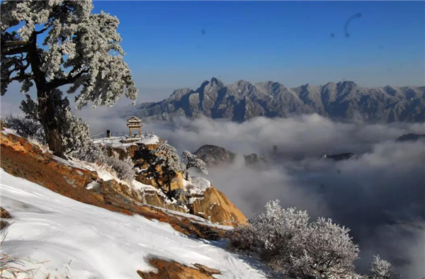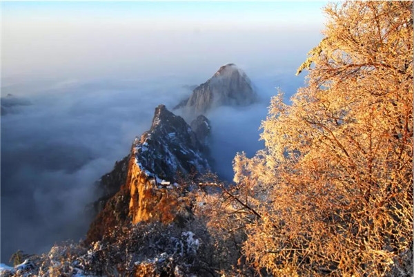 華山在11月下旬進(jìn)入冬季,12月至次年3月是華山雪季。游客可欣賞到難得一見(jiàn)的華山雪景——美麗的霧凇給樹(shù)木、巖石、屋舍都披上一層晶瑩的薄衣,尤其在大雪覆蓋后,山景變成一幅曼妙的白色圖畫(huà),峰上的樹(shù)木和古藤被透明的冰層包裹,極富魅力。