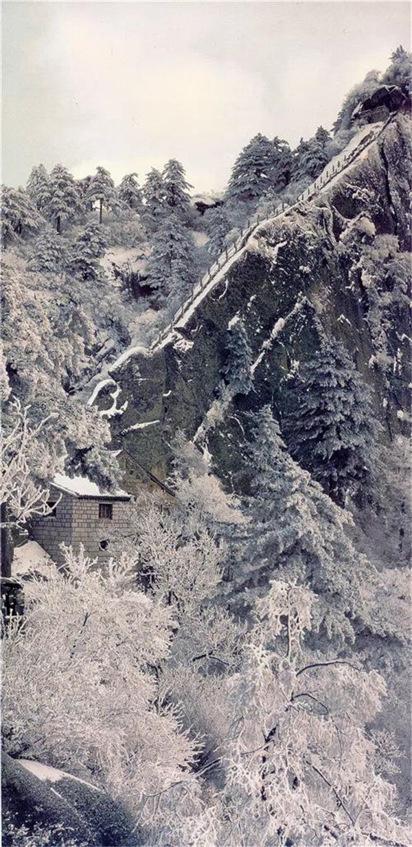 冬天的華山猶如一幅水墨山水畫,霧凇給山峰上的樹木、巖石、屋舍全部披上了一層晶瑩的薄衣,游客仿佛踏入一個夢幻世界。