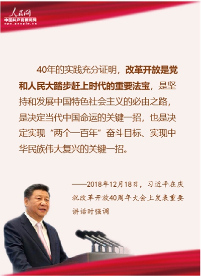 40年的實(shí)踐充分證明,改革開放是黨和人民大踏步趕上時代的重要法寶,是堅(jiān)持和發(fā)展中國特色社會主義的必由之路,是決定當(dāng)代中國命運(yùn)的關(guān)鍵一招,也是決定實(shí)現(xiàn)“兩個一百年”奮斗目標(biāo)、實(shí)現(xiàn)中華民族偉大復(fù)興的關(guān)鍵一招。