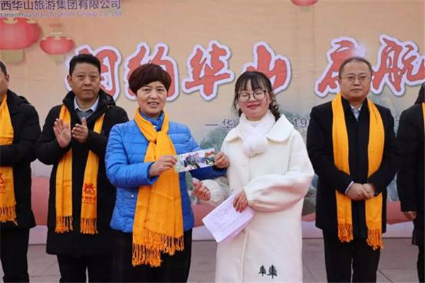 華山景區(qū)黨工委委員 、華山管委會(huì)副主任雷靖為幸運(yùn)游客代表送上華山門票