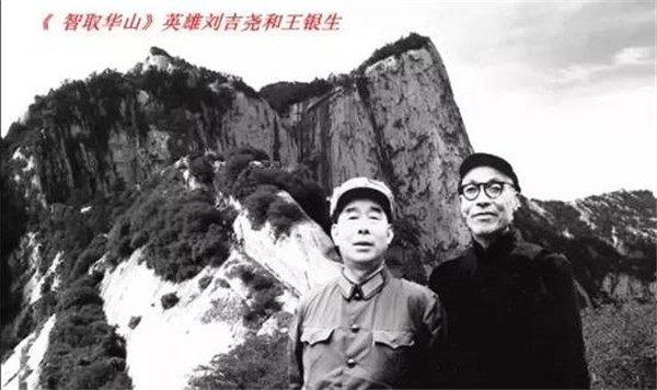 1949年6月,西北野戰(zhàn)軍解放了西安,當華陰縣城解放時,偽保六旅旅長韓子佩,帶一個警衛(wèi)營和旅直屬隊300余人逃到了華山上,企圖依靠華山天險繼續(xù)同胡宗南聯(lián)系等待時機,卷土重來。6月14日,中國人民解放軍大荔軍分區(qū)路東縱隊偵察參謀劉吉堯和六名偵察兵前往華山偵察道路。在當?shù)叵驅蹉y生的帶領下,劉吉堯星夜帶領楊建東、路德才、孟俊甫、楊黨成、崔朝山、張自發(fā)等8勇士,到達猩猩溝盡頭。數(shù)百丈危崖聳立在面前,王銀生指著一個十丈高的黑洞說:“這是天井,我們就要從這里上去。”說著就把背著的大繩套在腰間,借著兩腿叉開的撐力,徐徐向上。10分鐘后,洞里放下來一根繩頭,7位偵察員依次被吊上天井。經(jīng)過一段險坡后,前面又是一個高約15米的陡立石壑。王銀生施展他在山里采藥、打柴的本領,借著一條石縫登上去,把繩子拴在一個木樁上,將其他同志吊上來。又向北行約1里便是“老虎口”,這是懸在絕壁上的一個崖歙,崖歙的上面伸出一個飛巖,下面是傾斜的滑坡,坡下便是一眼望不到底的萬丈深淵。這時候只要雙腿發(fā)軟,就會滑下去,尸骨無存。戰(zhàn)士們只能借著腰肢和肩膀的上下?lián)瘟Γ孟褚粋€木楔子似的慢慢通過。在漆黑的夜里,他們又下滑輾轉500多米,才到達北峰腳下。
