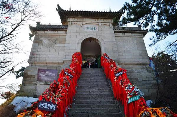 金鎖關(guān)北接五云峰,南控華山主峰,東西兩側(cè)壑深千丈,關(guān)前僅有一米寬的臺階石徑。環(huán)周古松蒼翠,奇石林立,常有祥云環(huán)繞,風光非常迤麗。關(guān)內(nèi)關(guān)外登山路兩側(cè)鐵索上情侶鎖、平安鎖,重重疊疊,紅繩彩線迎風搖曳,不失為關(guān)前一道美麗的風景線。在這里,鎖住你對愛情的誓言,表達你堅如磐石的愛情忠貞!