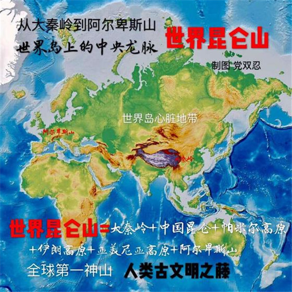 按照中國(guó)傳統(tǒng)的龍脈理論,“亞歐大陸的脊梁”也是“世界島”中央龍脈所在。由于人類古文明,包括古華夏、古印度、古波斯、古巴比倫,古希臘,皆源自“亞歐大陸脊梁”,所以也可稱其為“世界昆侖山”。著名的“絲稠之路”,也是從中國(guó)大秦嶺到歐洲阿爾卑斯山之路,也可稱之為“世界昆侖山之路”。過(guò)去,德國(guó)人首先“發(fā)現(xiàn)”了古老的“絲綢之路”。進(jìn)入21世紀(jì),英國(guó)人又率先以“絲綢之路”的視角,重新著述了“一部全新的人類史”。今天,中國(guó)人以“亞歐大陸的脊梁”為視野,將“世界島”連為一體,著述“一帶一路”,著述“大秦嶺到阿爾卑斯山之路”,著述“世界昆侖山之路”,也算是一個(gè)世界“地理新發(fā)現(xiàn)”。