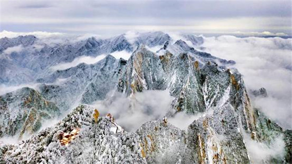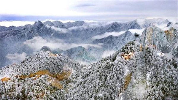 一場大雪將西岳華山變成白雪皚皚的世界,白雪與蒼翠的華山奇松、靈動的云海交相輝映,如夢如幻;滿山遍野玉樹瓊花,樹枝上通體的霧凇晶瑩剔透,繪就冬日畫境,美不勝收,游人如置身人間仙境。