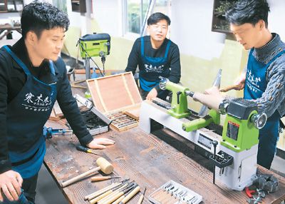 回鄉(xiāng)創(chuàng)業(yè)正成為大學(xué)生就業(yè)的重要方向。上圖為浙江省湖州市安吉縣統(tǒng)里村,3名大學(xué)畢業(yè)生在工作坊內(nèi)加工花器。張禮慶攝(新華社發(fā))