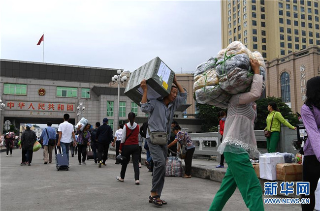 邊民從廣西東興市東興口岸中越友誼大橋進出(2018年10月27日攝)。 新華社記者 周華 攝