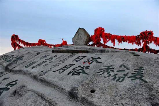 華山有五座主峰,從一定角度看就像一朵蓮花盛開在天際(中文的“花”),分別是東峰(朝陽峰),中峰(玉女峰),西峰(蓮花峰),北峰(云臺峰)以及最高最險的南峰。