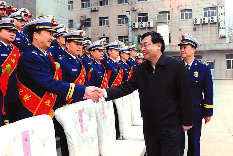 胡和平強調(diào),組建國家綜合性消防救援隊伍是黨中央適應(yīng)國家治理體系和治理能力現(xiàn)代化作出的戰(zhàn)略決策。改革轉(zhuǎn)制后,綜合性消防救援隊伍作為應(yīng)急救援的主力軍、國家隊,承擔著防范化解重大安全風險、應(yīng)對處置各類災(zāi)害事故的重要職責。希望大家深入學(xué)習(xí)貫徹習(xí)近平總書記在國家綜合性消防救援隊伍授旗儀式上的重要訓(xùn)詞,牢記“對黨忠誠、紀律嚴明、赴湯蹈火、竭誠為民”要求,為新時代追趕超越作出新的更大貢獻。