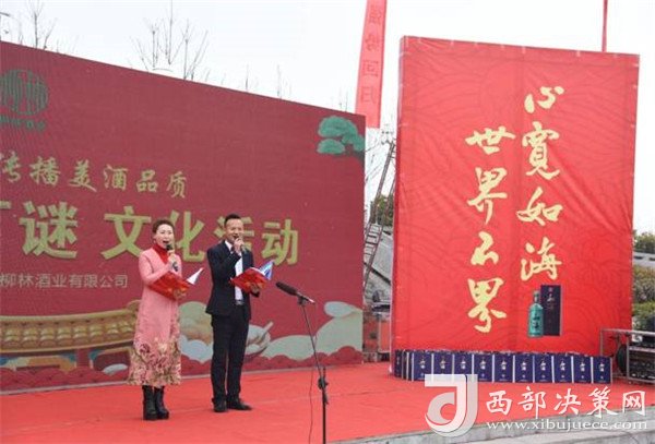 陜西柳林酒業(yè)有限公司副總經理周峰發(fā)表講話并向鳳翔父老送上新春祝福和節(jié)日的問候。“三陽開國泰,美哉柳林酒。今天是正月十五,首先我代表柳林酒業(yè)董事長付小銅先生、總經理柳林先生及全體員工給現(xiàn)場的父老鄉(xiāng)親、朋友們拜個晚年,祝各位家庭好、事業(yè)好、身體好心情好、運氣好、福氣好、財氣好、愛情好、朋友好、新的一年一切都好!柳林酒業(yè)主辦的以傳播柳林美酒品質為主題的“鬧元宵有獎猜燈謎文化活動”,在此,對前來的各位父老鄉(xiāng)親,各界朋友表示衷心的感謝。本次猜謎活動獎品總價值15萬元,共設1000條謎語,只要猜中謎底,關注“柳林酒業(yè)”,即可獲得獎品?,F(xiàn)場更有國家級評酒大師親臨現(xiàn)場,品柳林美酒,共同傳播美酒文化和歌舞表演環(huán)節(jié),相信大家一定會不虛此行,度過一個難忘的元宵佳節(jié)。
