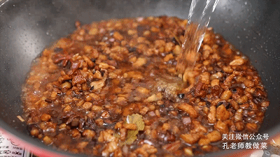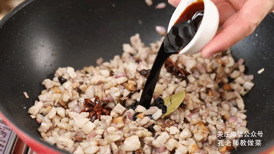 8.調(diào)入生抽、老抽,鹽,翻炒均勻。
