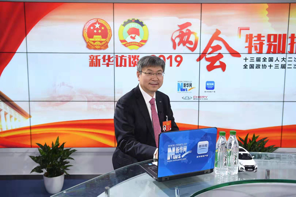 全國人大代表、奇瑞汽車股份有限公司黨委書記、董事長尹同躍,3月6日做客新華網(wǎng)2019全國兩會特別報(bào)道。新華網(wǎng) 李相博 攝