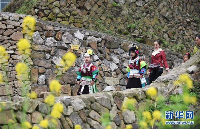 3月16日,在丹寨縣南皋鄉(xiāng)清江村,苗族姑娘在前往參加翻鼓節(jié)活動途中。 當(dāng)日,貴州省黔東南苗族侗族自治州丹寨縣南皋鄉(xiāng)清江村清江村舉行翻鼓節(jié)。翻鼓節(jié)是當(dāng)?shù)孛缱宕迕裼哟焊絹淼拿袼坠?jié)日,至今已有近600年歷史,每年農(nóng)歷二月舉行。 新華社記者 楊文斌 攝