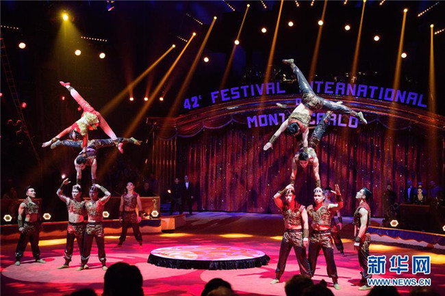 這是2018年1月20日,中國上海雜技團(tuán)在摩納哥蒙特卡洛馬戲節(jié)上表演。 新華社記者 陳益宸 攝