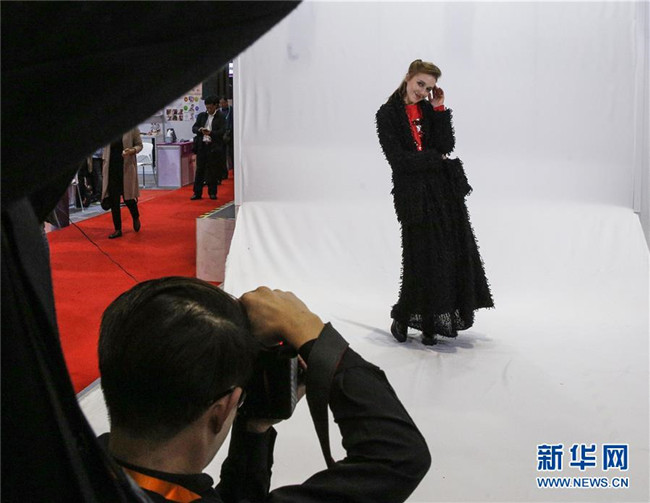 這是2018年11月9日,在中國上海的首屆中國國際進(jìn)口博覽會(huì)上,模特展示意大利時(shí)裝。 新華社記者 張玉薇 攝