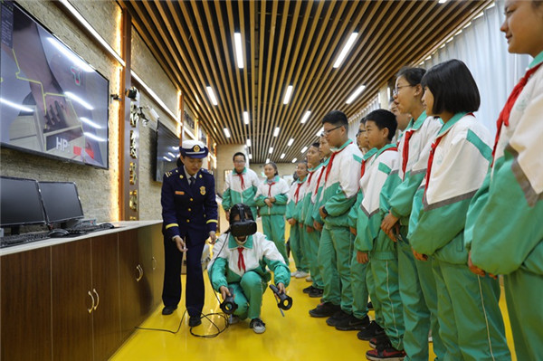 在寧夏銀川閱海九中,一堂生動(dòng)有趣的消防示范課吸引了學(xué)生們觀看。學(xué)校老師結(jié)合網(wǎng)上流行的“找茬”游戲,繪制了一幅消防漫畫圖,鼓勵(lì)學(xué)生們走上講臺(tái),開動(dòng)腦筋,查找漫畫里的消防安全隱患。在寧夏中小學(xué)消防科普體驗(yàn)館里,一處VR虛擬體驗(yàn)區(qū)吸引了不少學(xué)生前來參觀和體驗(yàn)!計(jì)算機(jī)模擬生成多類“火災(zāi)現(xiàn)場”環(huán)境,參加體驗(yàn)的學(xué)生只要戴上眼鏡,身處虛擬的“火災(zāi)現(xiàn)場”,通過頭和手等身體部位和傳感器的配合,就能模擬體驗(yàn)一把“滅火”和火場逃生!