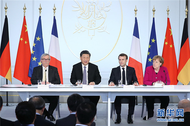 國(guó)家主席習(xí)近平26日在巴黎同法國(guó)總統(tǒng)馬克龍一道出席中法全球治理論壇閉幕式。德國(guó)總理默克爾、歐盟委員會(huì)主席容克應(yīng)邀出席。