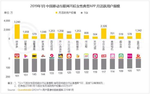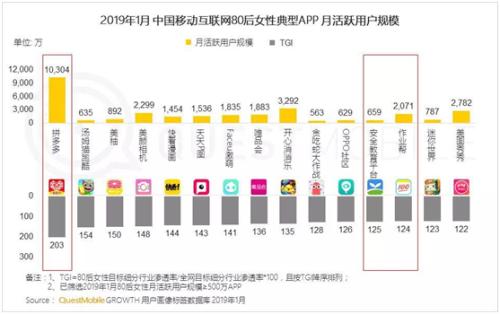 在拼多多、今日頭條、新浪微博、美顏相機(jī)及各類短視頻等女性最愛打開的20多個(gè)APP中,移動(dòng)互聯(lián)網(wǎng)70和80后女性最愛使用的典型APP是新電商平臺拼多多,達(dá)到3240萬,TGI(Target Group Index,目標(biāo)群體指數(shù))高達(dá)80.5%,超過各類短視頻應(yīng)用。