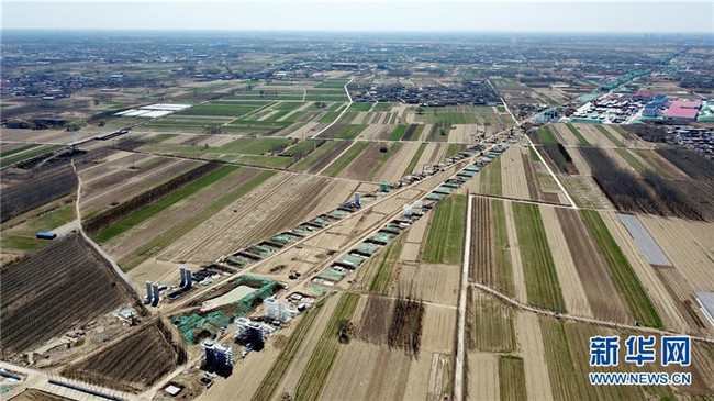 這是京雄城際鐵路施工現(xiàn)場(chǎng)(3月20日無人機(jī)拍攝)。新華社記者 楊世堯 攝
