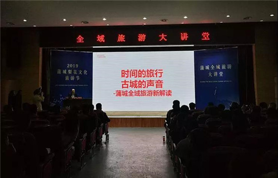 4月1日,第三屆蒲城梨花文化旅游節(jié)系列活動(dòng)“全域旅游大講堂”在蒲城廣電中心10樓演播廳開講。特邀請(qǐng)專家學(xué)者賈云峰老師以授課的方式座談古今、論道蒲城,深挖蒲城縣域旅游資源,在大華山旅游圈的整合下,針對(duì)蒲城旅游資源,全面實(shí)施蒲城全域旅游定位、實(shí)操及營(yíng)銷,贏得自己的地位與影響力、市場(chǎng)占有率。