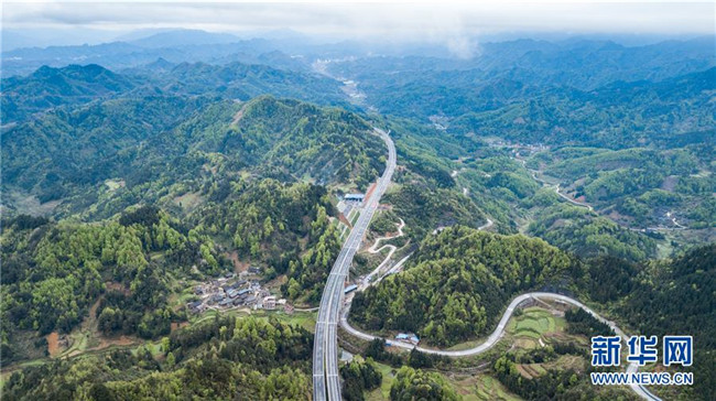 4月3日無(wú)人機(jī)拍攝的三荔高速三都西至中和路段。 新華社記者 陶亮 攝