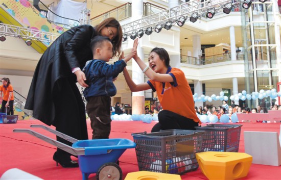 4月2日,早教老師與自閉癥患兒家庭協(xié)作完成互動游戲。當(dāng)日是第十二個“世界自閉癥關(guān)注日”,圍繞今年的主題“消除誤區(qū),倡導(dǎo)全納”,銀川市文明辦、殘聯(lián)等單位聯(lián)合開展“藍(lán)色行動,愛不孤單”志愿服務(wù),通過宣講、捐贈、游戲等方式,倡導(dǎo)人們尊重、愛護自閉癥患兒,助其融入社會大家庭。 記者 白茹 攝