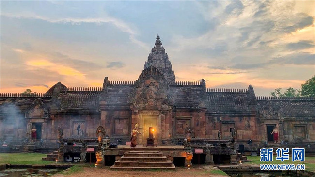 這是4月5日拍攝的泰國(guó)武里南府低城寺。 一年一度的“登帕儂隆山節(jié)”在泰國(guó)東北部毗鄰柬埔寨的武里南府帕儂隆山舉辦。當(dāng)?shù)厝艘怨叛b巡游展示獨(dú)特的傳統(tǒng)文化,希望能吸引更多外國(guó)游客、促進(jìn)當(dāng)?shù)芈糜螛I(yè)發(fā)展。 新華社記者 張可任 攝