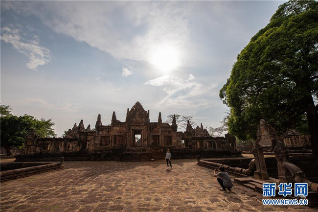 4月5日,游客參觀泰國(guó)武里南府低城寺。 一年一度的“登帕儂隆山節(jié)”在泰國(guó)東北部毗鄰柬埔寨的武里南府帕儂隆山舉辦。當(dāng)?shù)厝艘怨叛b巡游展示獨(dú)特的傳統(tǒng)文化,希望能吸引更多外國(guó)游客、促進(jìn)當(dāng)?shù)芈糜螛I(yè)發(fā)展。 新華社記者 張可任 攝
