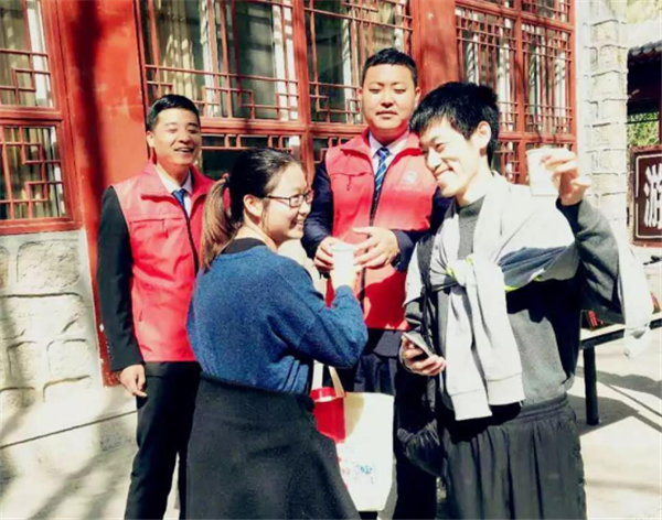 來自景區(qū)一線工作崗位的30名“紅馬甲”志愿者首次參與到度節(jié)執(zhí)勤工作中,志愿者們在關(guān)鍵區(qū)域向游客提供游覽咨詢、道路指引、免費熱水供應(yīng)、免費醫(yī)療救護(hù)等服務(wù)。