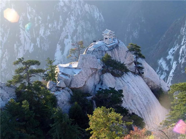華山古稱“西岳”,是我國著名的五岳之一,南接秦嶺,北瞰黃渭,扼守著大西北進出中原的門戶。華山由一塊完整碩大的花崗巖體構成,有東、西、南、北、中五峰,主峰有南峰“落雁”、東峰“朝陽”、西峰“蓮花”,三峰鼎峙。最高峰也是五岳最高峰—南峰“落雁”海拔2154.9米。