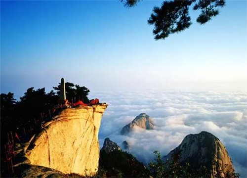 登臨華山之巔,“只有天在上,更無(wú)山與齊。舉頭紅日近,回首白云低。”站在華山之上,風(fēng)云際會(huì),秦川茫茫,藍(lán)天如洗。李白有詩(shī)稱(chēng)贊“西岳嶸嶸何壯哉,黃河如絲天際來(lái)。”
