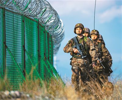 官兵在邊境線(xiàn)上巡邏。