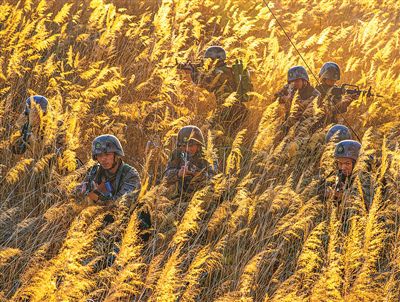 官兵在復(fù)雜地域開(kāi)展戰(zhàn)術(shù)訓(xùn)練。